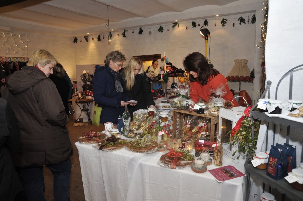 Die heimeligen Ausstellungsräume in der Alten Schreinerei, der Scheune und der romantisch liebevoll geschmückte Innenhof laden Groß & Klein zum Verweilen ein. Kulinarischen Köstlichkeiten und verführerische Düfte erwärmen Bauch und Herz. Von der langen Roten mit Zwiebeln, über frische Waffeln, gebrannte Mandeln und Lebkuchen werden auch wieder die „heiße Liebe“, Winzer Glühwein und Früchtepunsch angeboten.